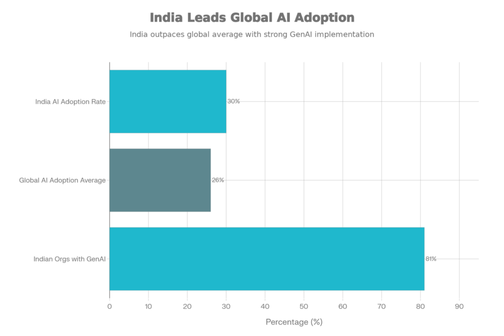 India’s AI adoption is exponentially higher than the world average, with more than 81% of Indian enterprises adopting generative AI solutions.