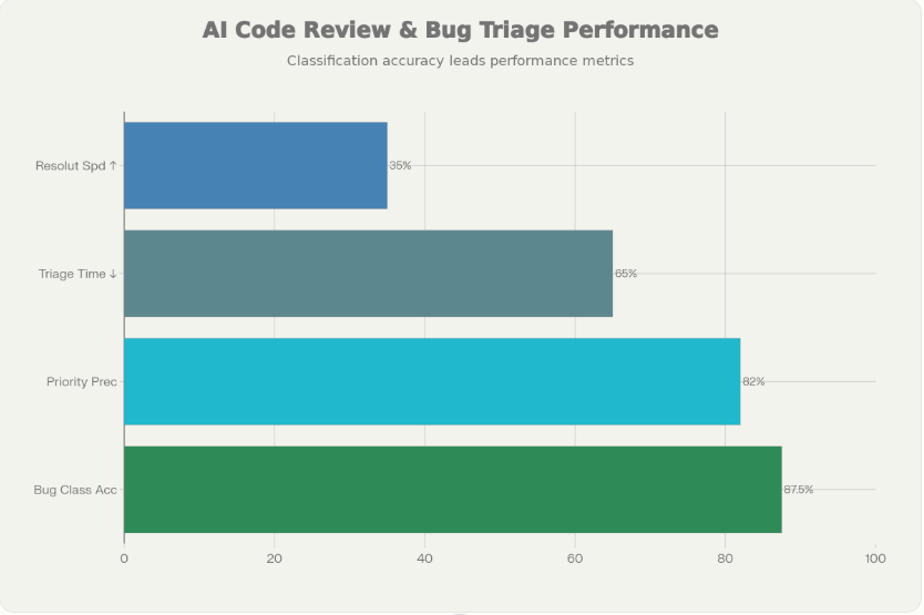 AI‑based bug triaging attains more than 85% accuracy in classification with 65% less triage time and 30-40% faster resolution.