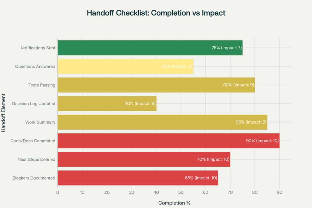 Research indicates that teams with disciplined handoff routines resolve issues 40% faster and have 60% less duplicated work than those with informal handoffs.