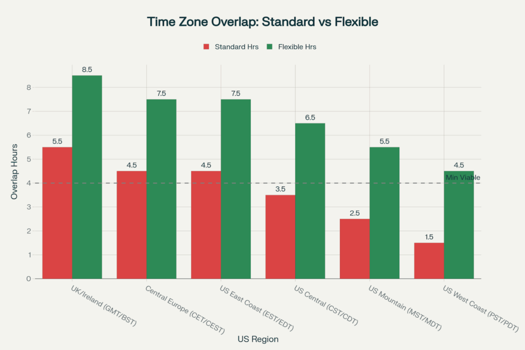 Time zone cooperation mastery turns what at first seems like an obstacle into a strategic benefit. Coordination is tricky with 9.5–14 hours between India and the US, but the time difference can be used to run follow-the-sun that outputs a potential 20 hours of work daily if designed right – that’s 3.3 times the output of teams located at a single spot.