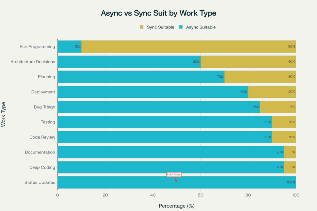 Deep work and flow states: Removing needless meetings results in large chunks of uninterrupted time, which is necessary for high-level thinking and problem-solving. Developers report becoming 40 to 60 percent more productive when they move from fragmented, meeting-heavy schedules to async-first workflows that feature 4 to 6-hour blocks of deep work.