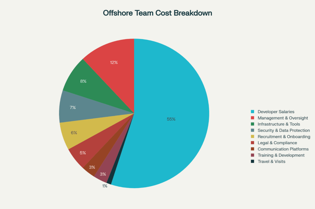 Only if optimization opportunities are taken advantage of, such as 30% savings on communication platforms, 25% on recruitment, 20% on infrastructure and training, and 15% on management, does this $130,000 monthly investment stand in stark contrast to the $260,000+ for equivalent onshore capacity.