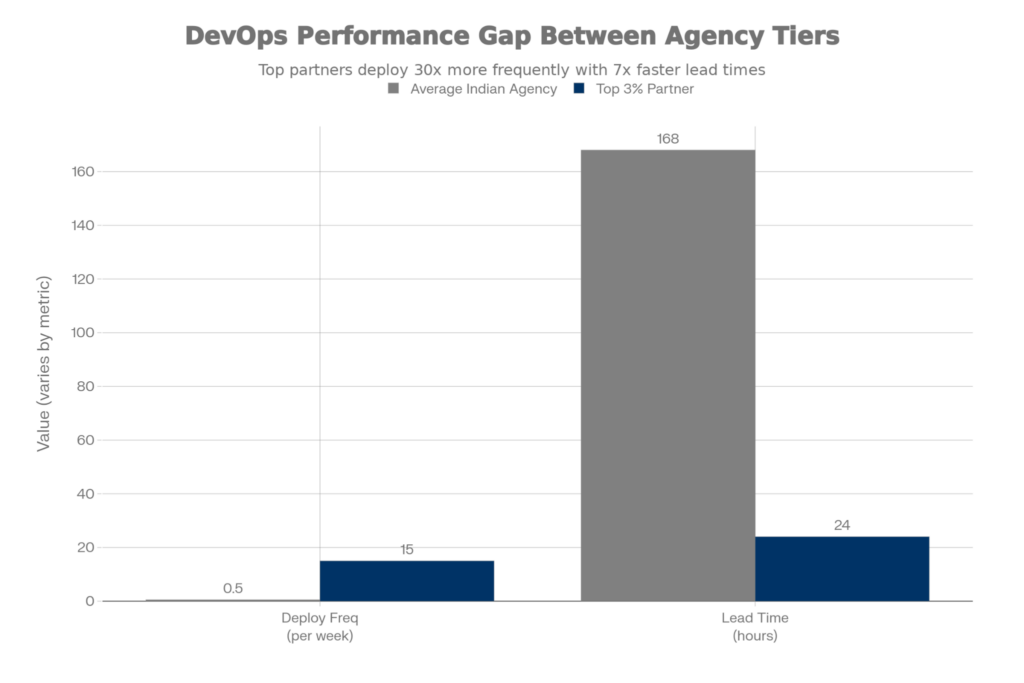 As the data shows, the operational difference is night and day. An average agency might release once a week (or month) with a long lead time for changes, meaning a bug fix could take days to get to production. A world-class vendor, with CI/CD (Continuous Integration/Continuous Deployment) pipelines and automated testing, can often deploy multiple times per day with a lead time under 24 hours.